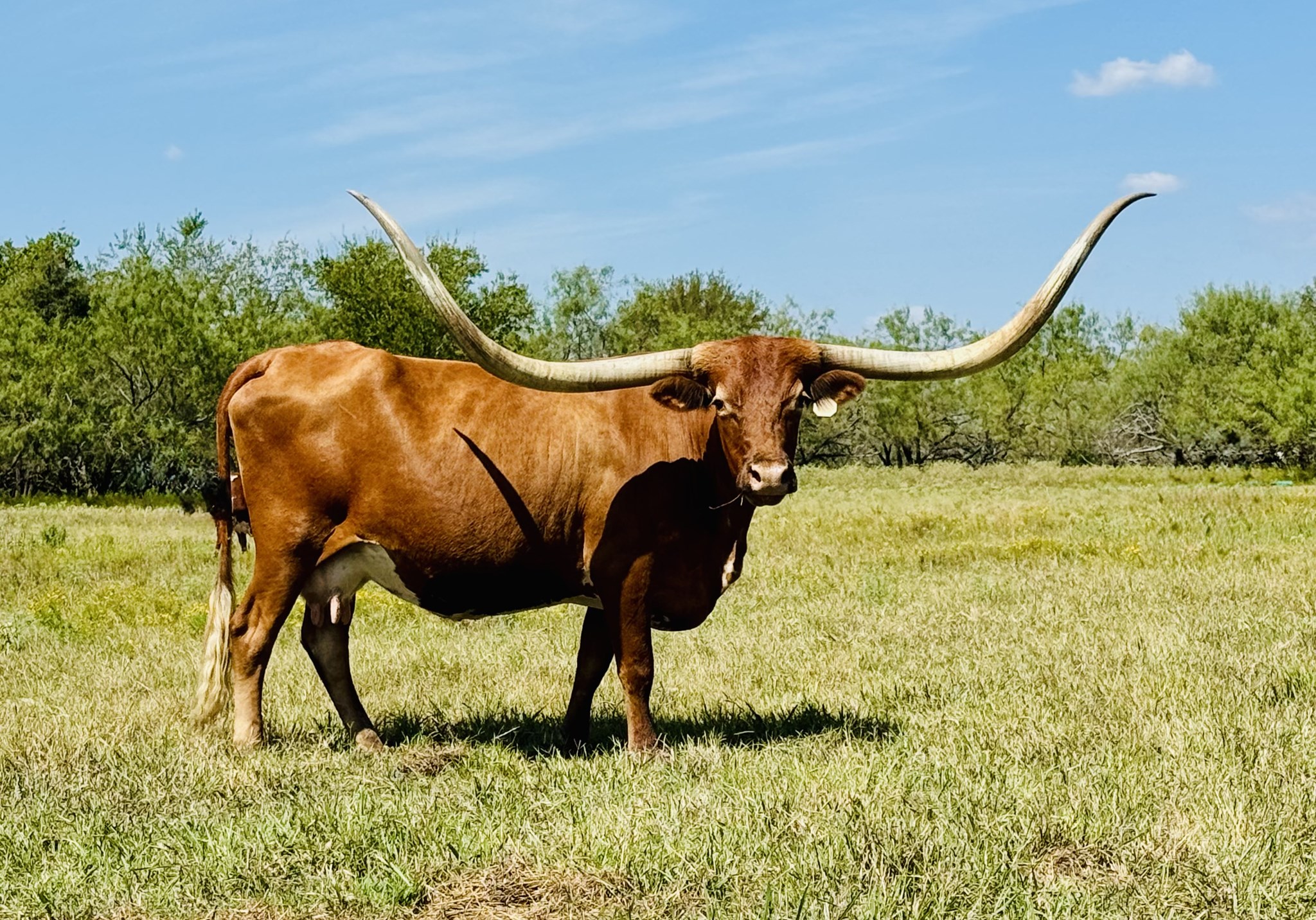 Rapt in Red not only has 87” ttt but over 110 of total horn. Her udder always has plenty of milk to raise big calves and she calves like clockwork each spring.